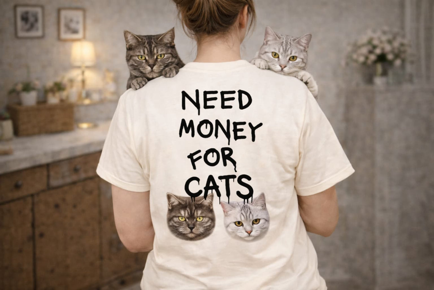 Need Money for Cats Bio T-Shirt Backprint