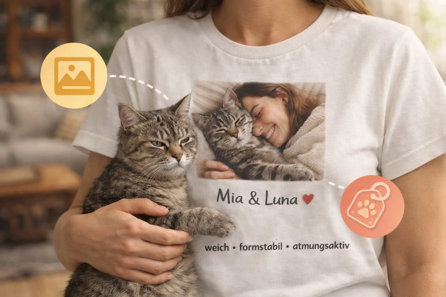 Durch individuelle Anpassungen je nach Design wie Foto-Upload und Namen wird aus einem T-Shirt kein austauschbares Design, sondern ein Unikat, das sich wirklich nach dir und deiner Katze anfühlt.